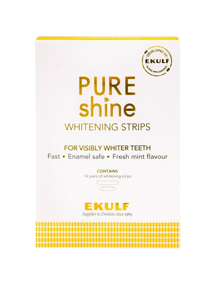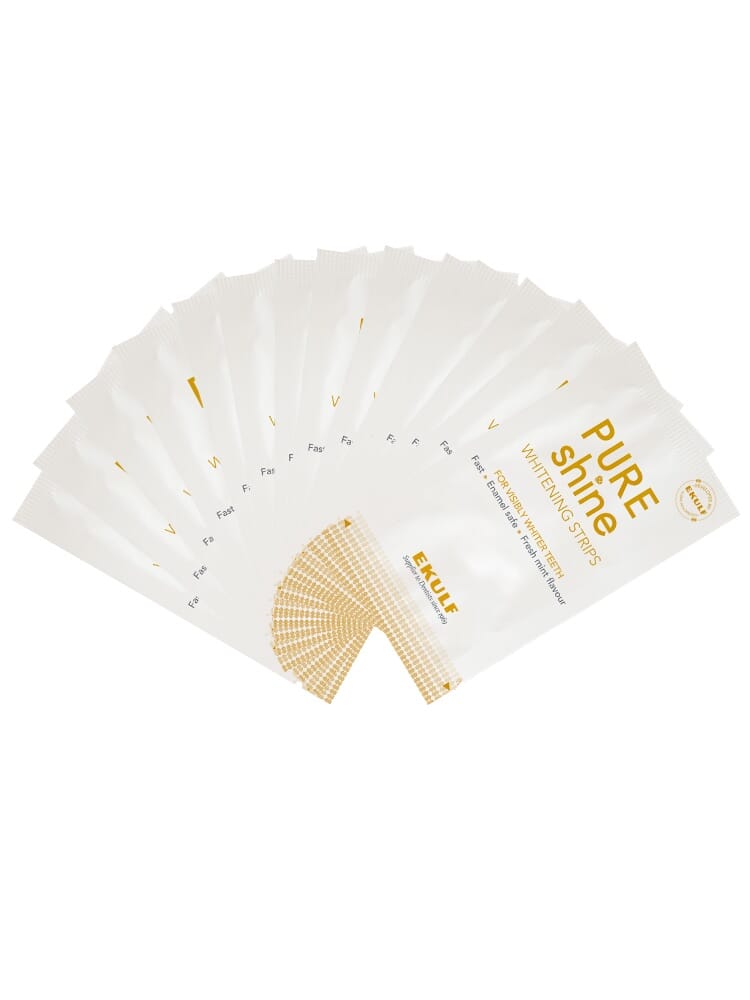 PURE shine Whitening strips er skånsom blekningsstrips som gir et hvitere smil – på bare 14 dager. Produktet er utviklet i samråd med tannleger.