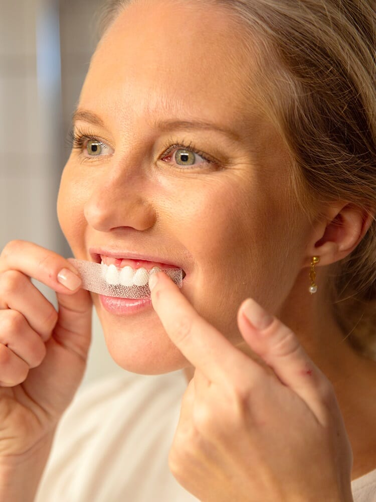Anvend PURE shine Whitening Strips minst 30 minutter hver dag i to uker.